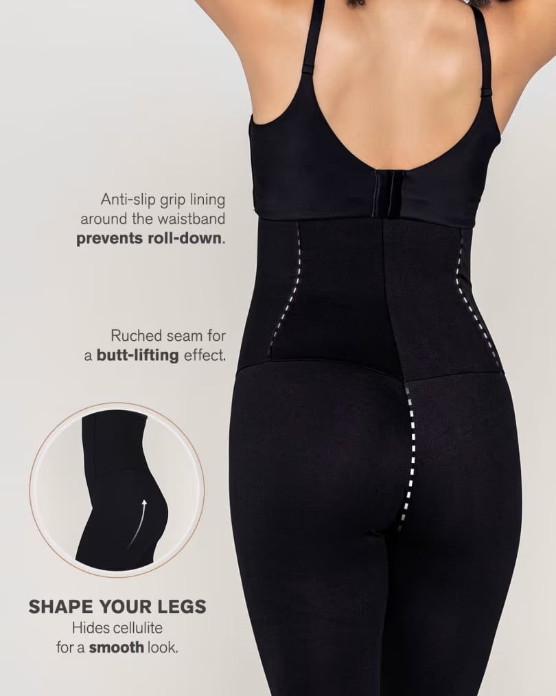 This legging is made of soft flex microfiber fabric for compression all the way down to your ankles. An inner layer of our moisture-wicking firm compression PowerSlim® fabric sculpts your entire torso. Designed for perfect fit and coverage, the extra-high waistband includes an anti-slip grip lining at the top to keep it in place, no matter what.
