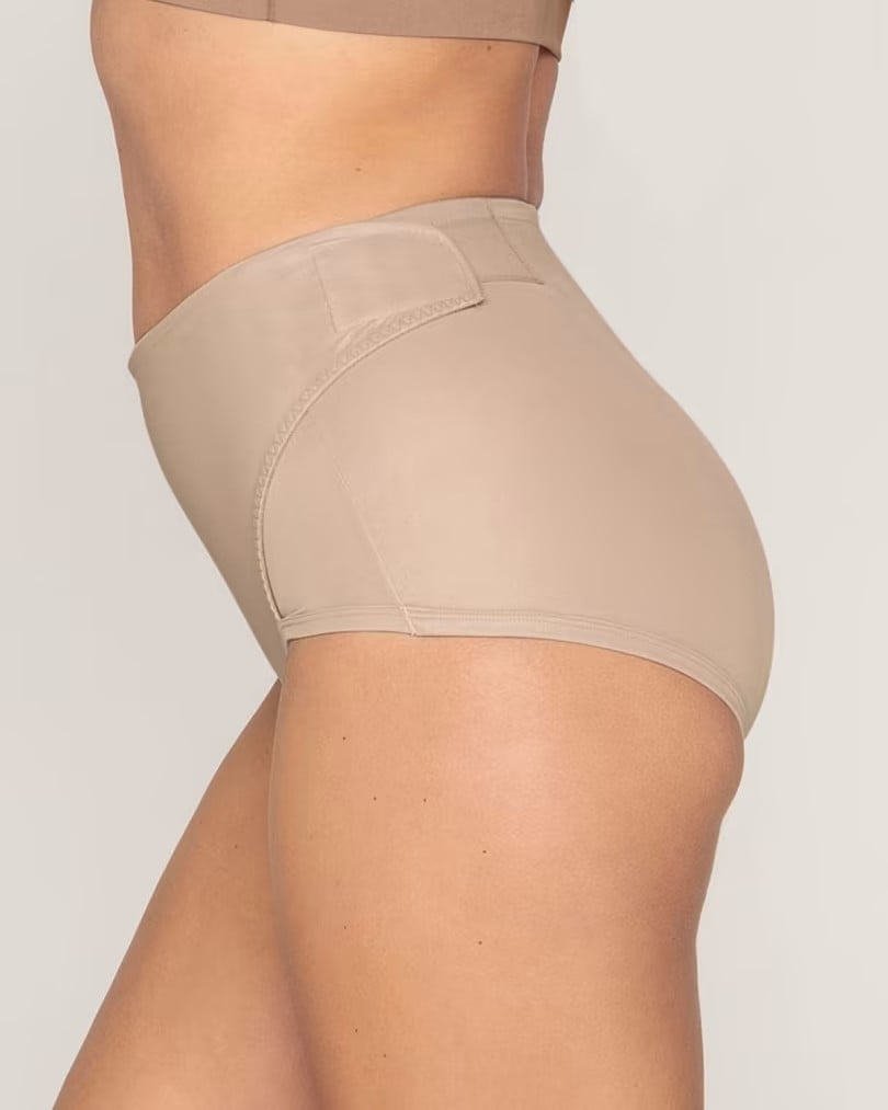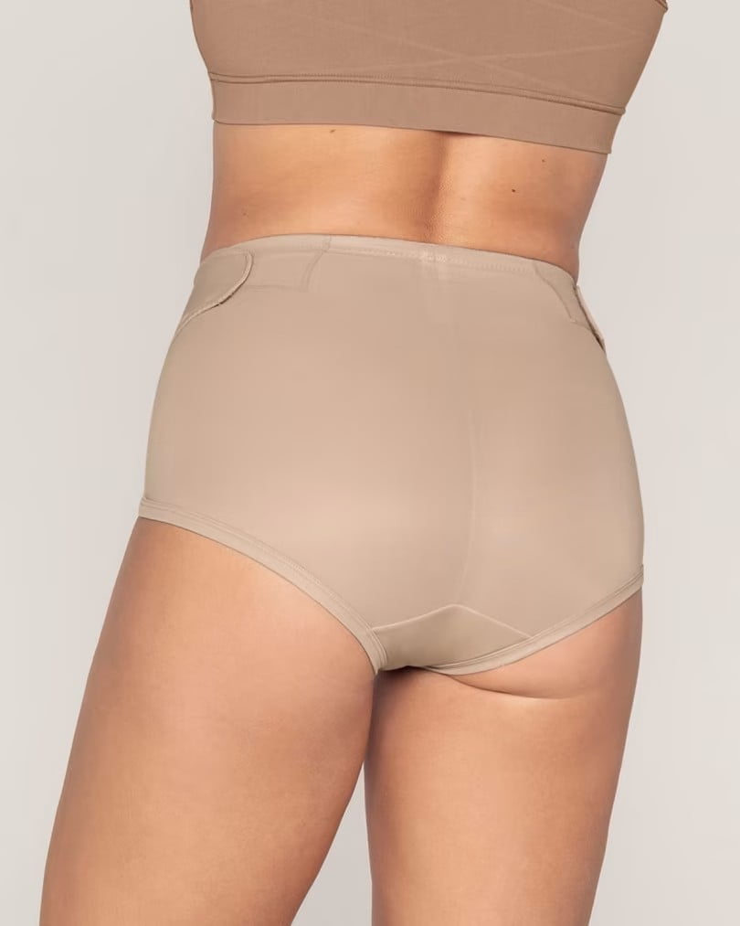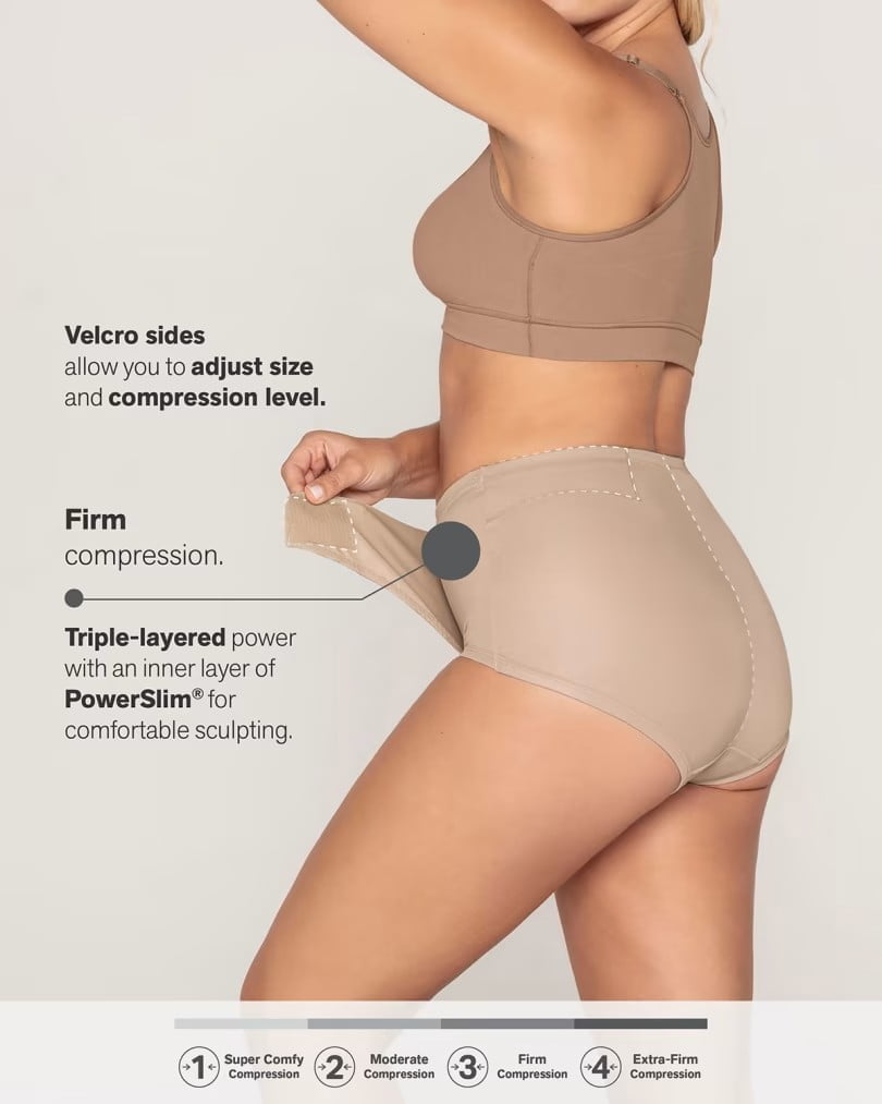 This classic postpartum girdle comfortably slims your mid-to-lower tummy. Its front panel is made of PowerSlim®: our incredible firm compression fabric with multidirectional reducing strength. Adjustable Velcro sides allow you to find your perfect fit and choose your own compression level. The elastic waistband and leg bands are covered for no panty lines. With no hooks or zippers, this is the ideal panty to wear as you get back into shape, while protecting your c-section incision or recovering from a natural delivery.