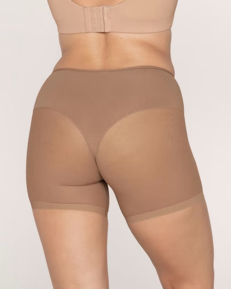 Shape your curves and prevent chafing at the same time! This slip short is made of our signature DuraFit® moderate compression fabric to smooth out your tummy and shape your waist. It has a sheer short bottom for an invisible look under clothes, plus this design helps reduce chafing under skirts and dresses. The thong effect in the back offers a light butt-lifting effect. Go ahead and wear this slip short under fitted clothes – it won’t show through!